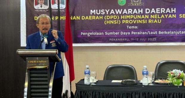 PEKANBARU – Himpunan Nelayan Seluruh Indonesia (HNSI) Provinsi Riau menggelar Musyawarah Daerah (Musda) di Hotel Furaya Pekanbaru, Jumat, 11 Juli 2025. Musda kali ini mengangkat tema besar: Pengelolaan Sumber Daya Perairan/Laut Berkelanjutan, sebagai bentuk komitmen organisasi dalam meningkatkan kesejahteraan nelayan di Bumi Lancang Kuning.